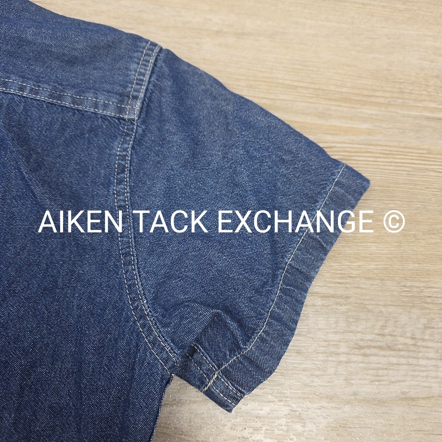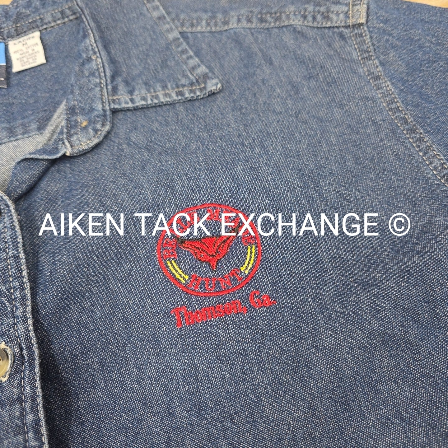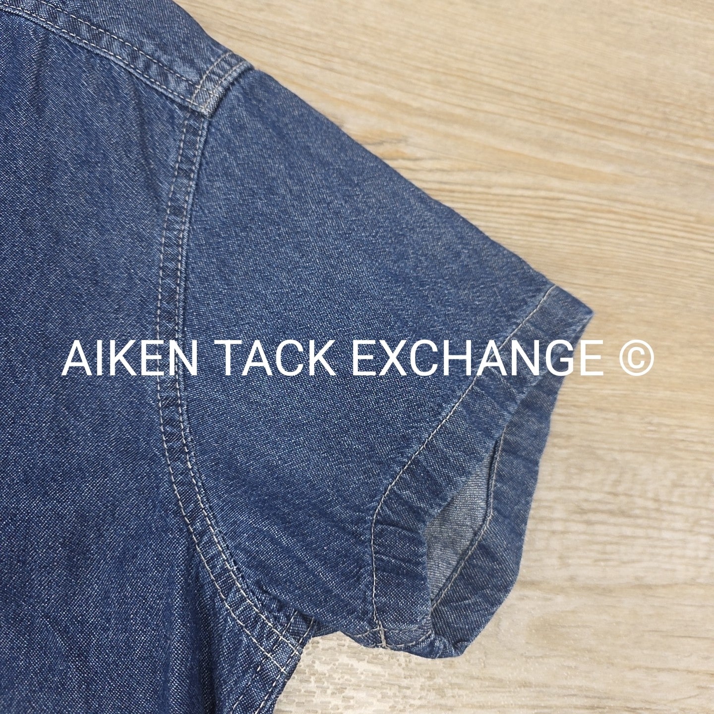 Belle Meade Hunt Denim Short Sleeve Button Down Shirt, Size Medium