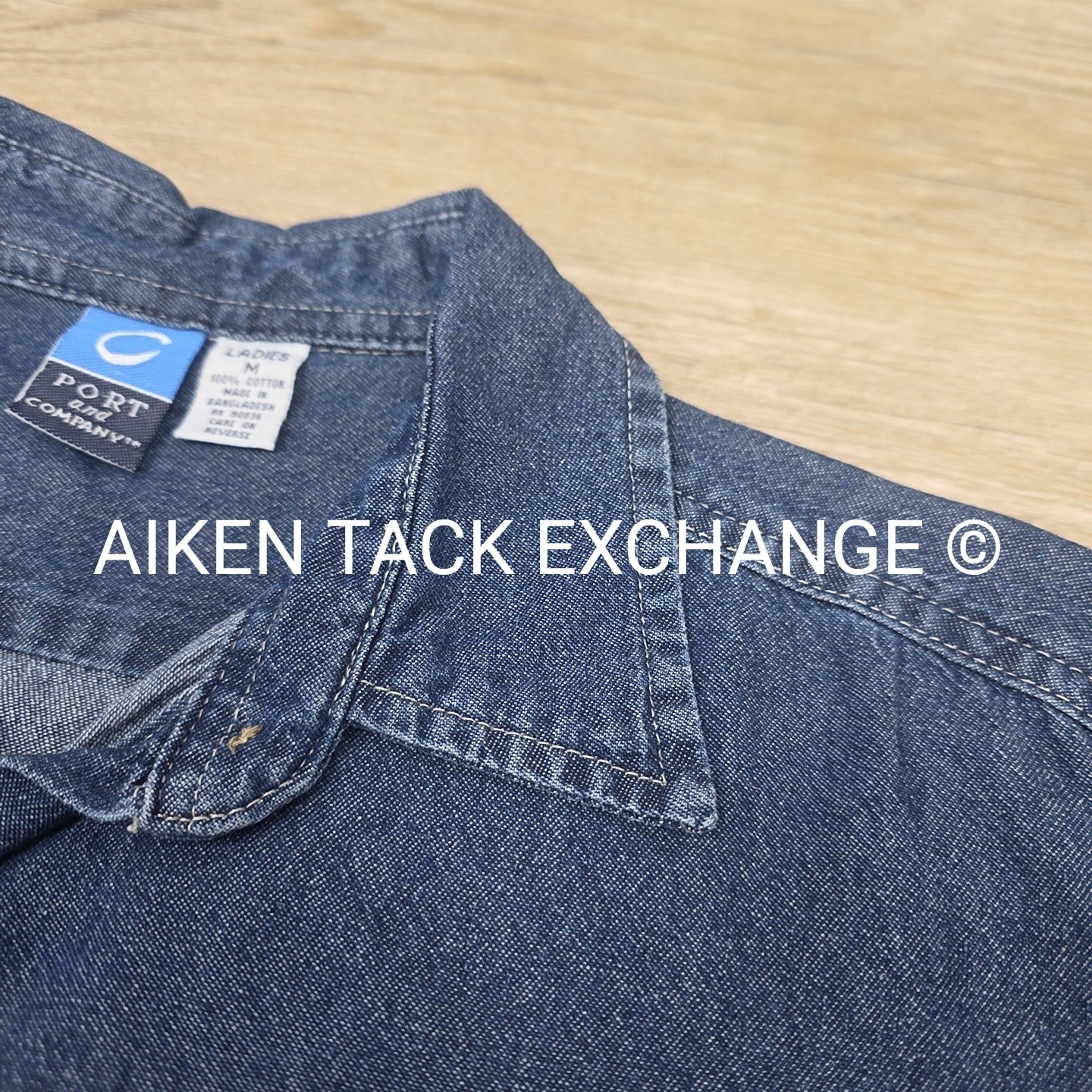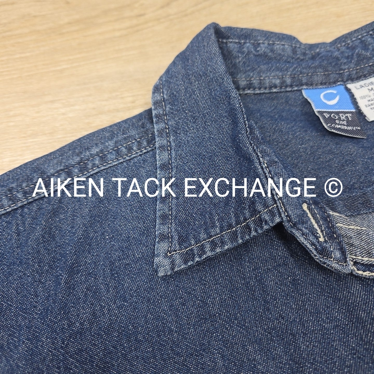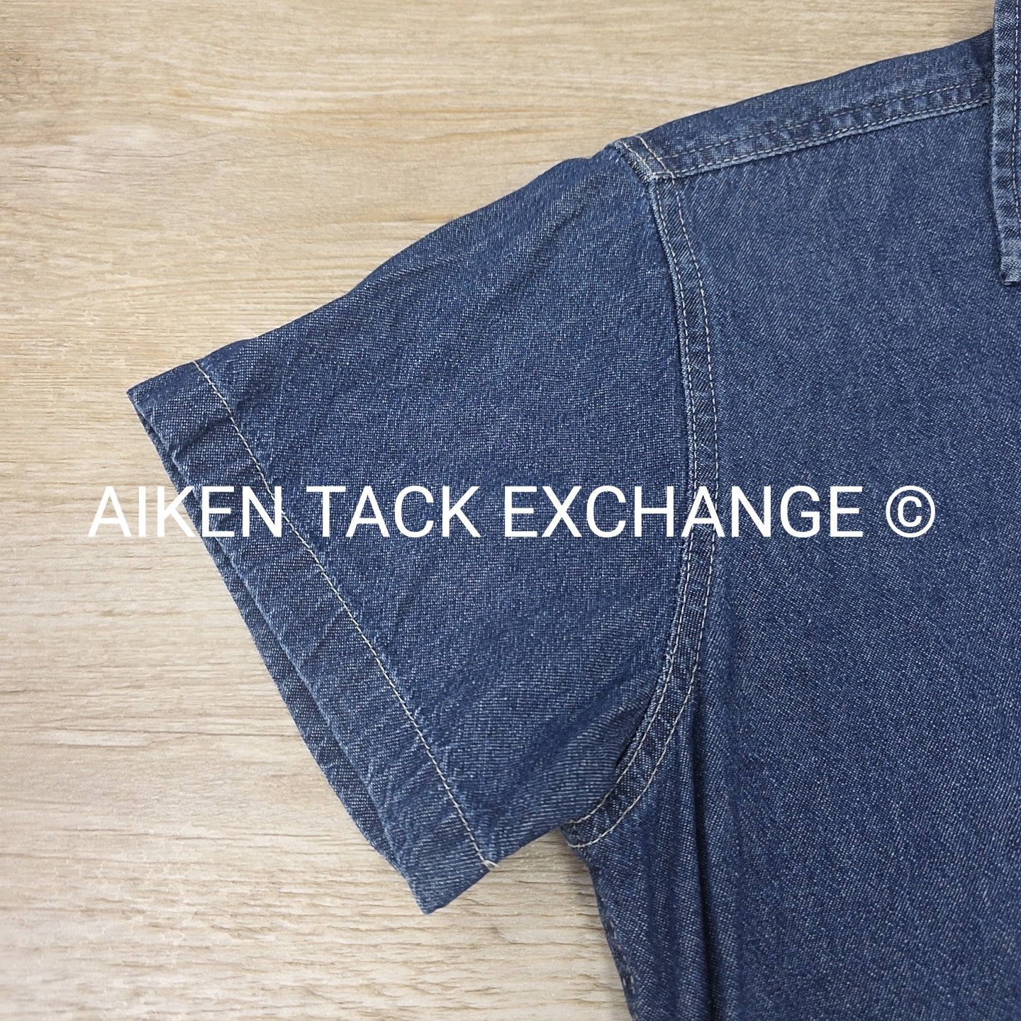Belle Meade Hunt Denim Short Sleeve Button Down Shirt, Size Medium