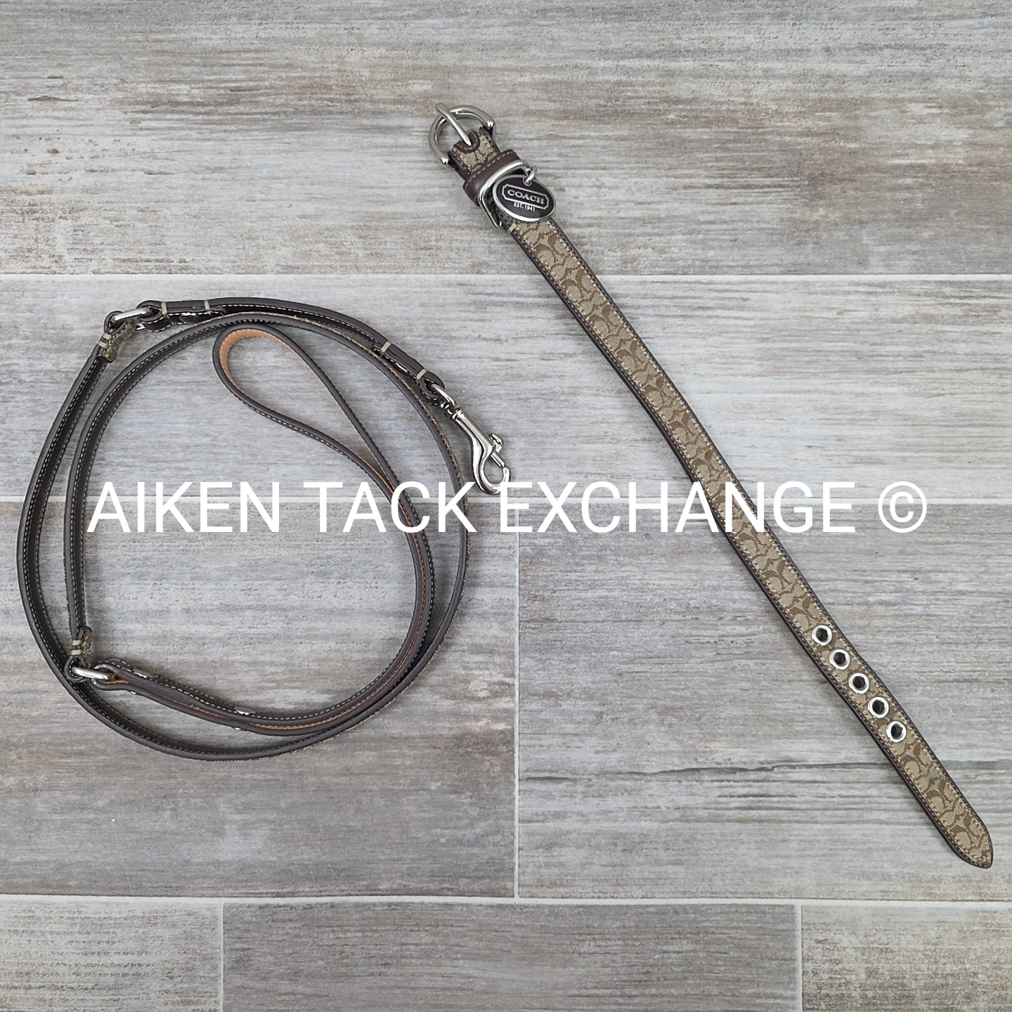 Coach Canvas Dog Collar w/ Matching Leash, Size Small