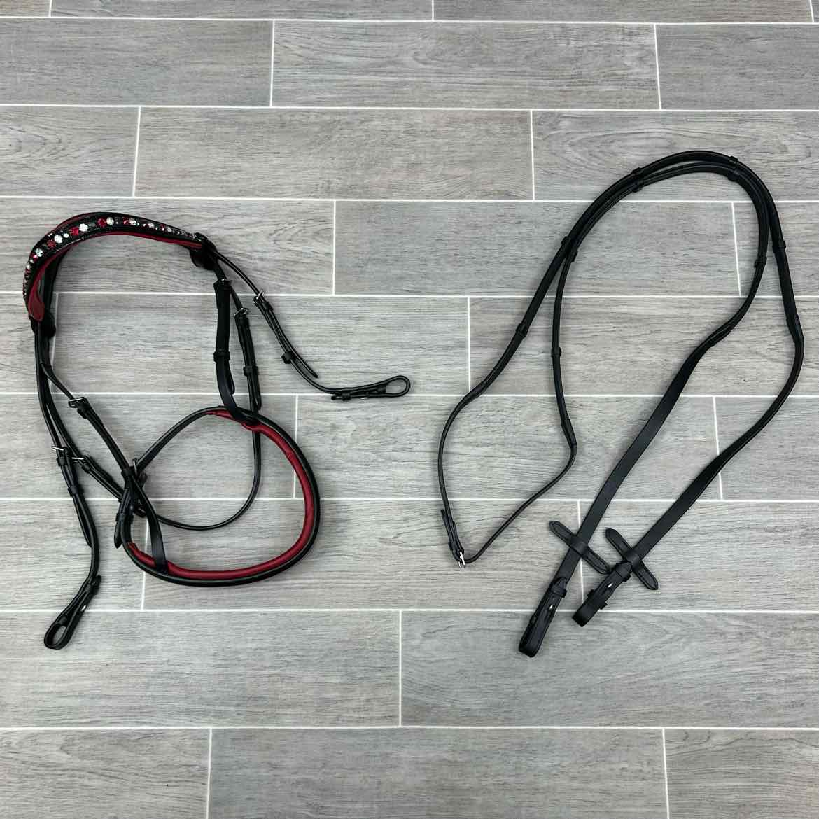 Halter Ego Anatomic Snaffle Bridle with Matching Reins, Black & Red, Size Full