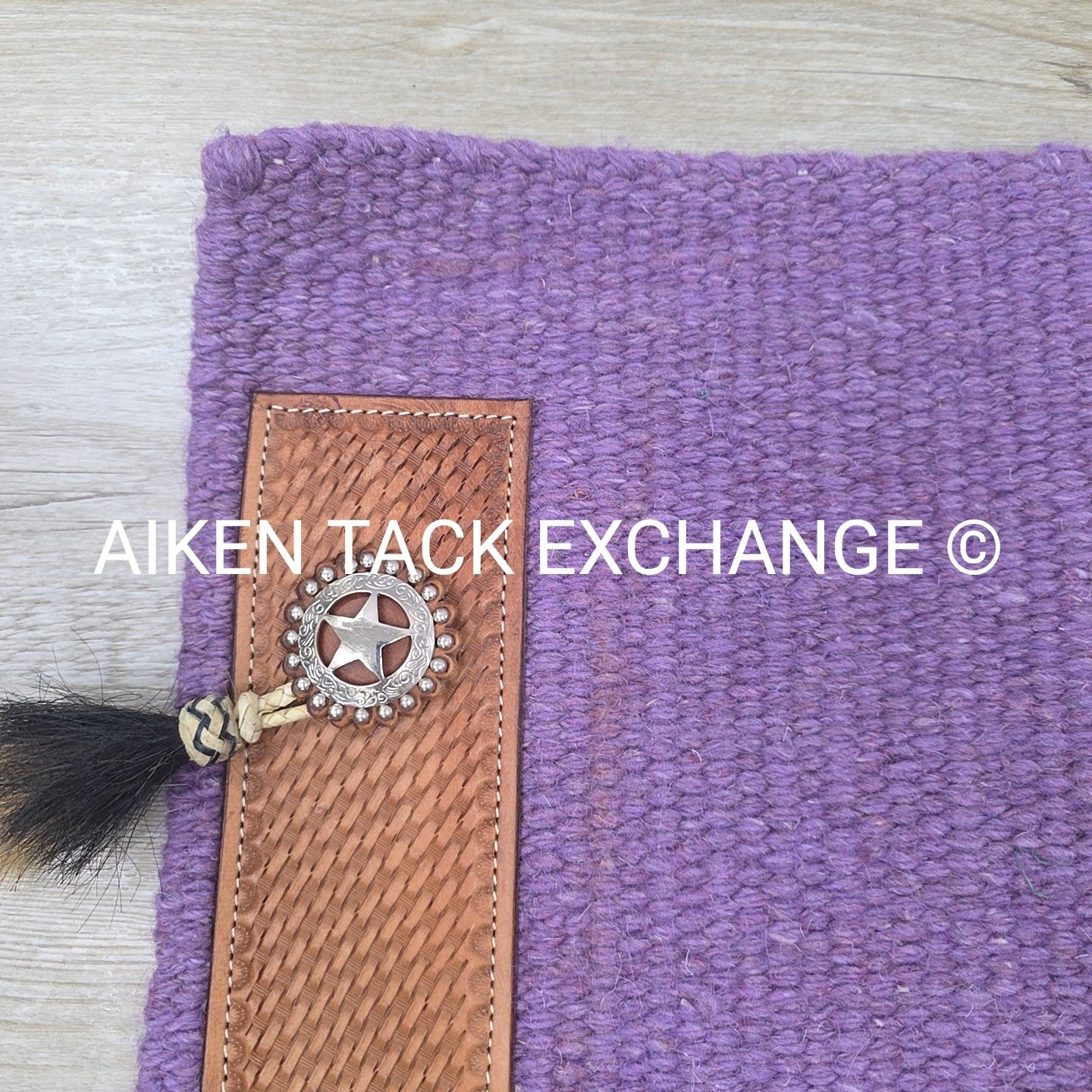 Western Saddle Blanket with Leather Detail, 34" x 36"